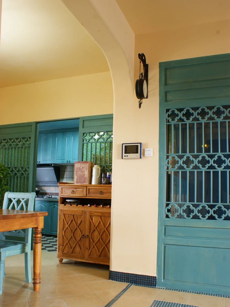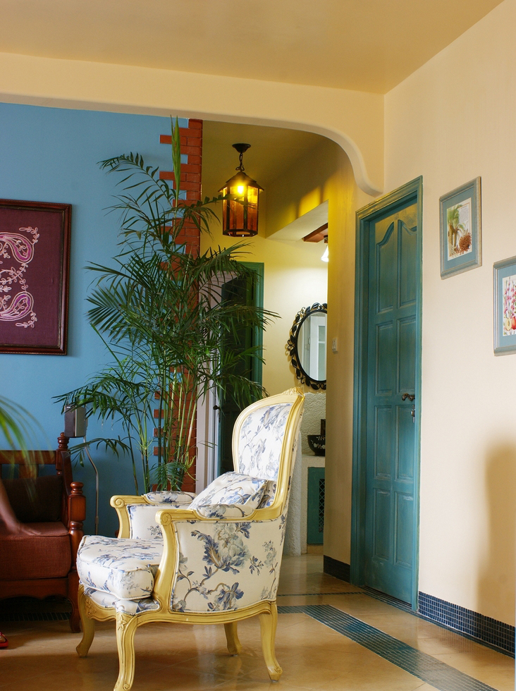 LI先生則喜歡喝啤酒,這也是我從業以來遇到喝啤酒次數最多的業主之一。因為在建材市場是選材不是選馬,所以始終沒敢喝到混淆 “馬賽克”和“賽馬”的境界,幸好喝的不是二鍋頭,若用啤酒的量來挑戰我的二鍋頭酒量,喝完后肯定要變成功夫熊貓。 每個業主都有一串家的鑰匙,通向家門的同時也通向心靈深處渴望到達的地方。當主臥方案確定后, XI小姐拍著LI先生的肩膀說:“這下你就是莊園主了。” 于是衍生了孔雀莊園的主題,精心打造了這串《通往孔雀莊園的鑰匙》