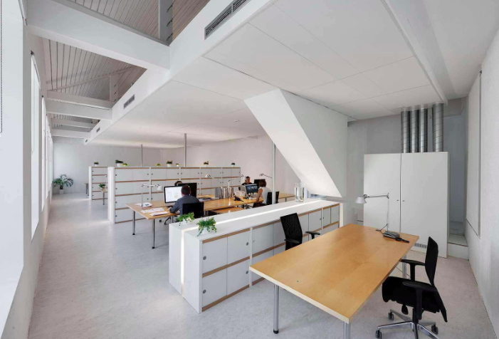 簡單點說就是沒天花,是比較現代化的一種風格。處理方式很簡單:先把天花頂及墻邊靠上邊十幾厘米的地方刷上一層素色(單色,一般是深色調),并把通過其中的所有電線、空調管道(消防水管除外)也刷上同樣的顏色。